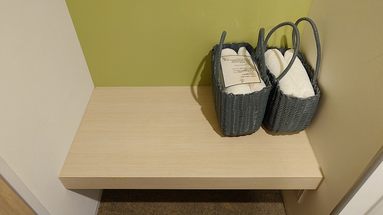 このホテルには大浴場があります。タオルは部屋から持っていく形です。バッグがあるのは便利です。