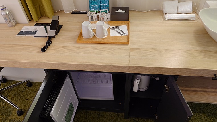 カウンターの下に冷蔵庫があります。
