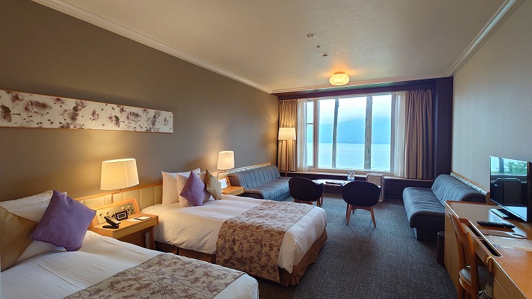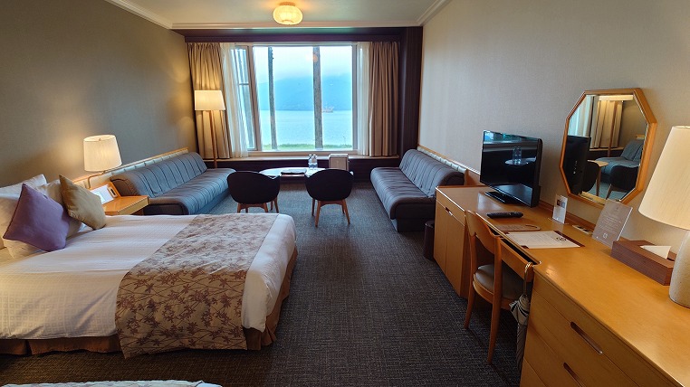 別館のスーペリアツインルームは40.4平米あります。かなりゆとりがありますね。但しソファベッドを使って4人で宿泊するとぎゅうぎゅうですが。