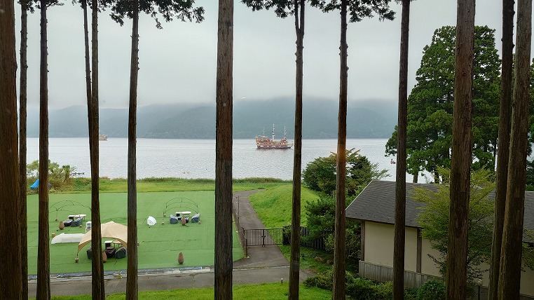 霧に煙る芦ノ湖を眺めながらの午後のひと時も良いものです。
