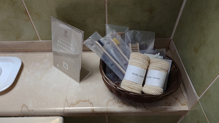 部屋に置いてあるアメニティーは必要最低限です。