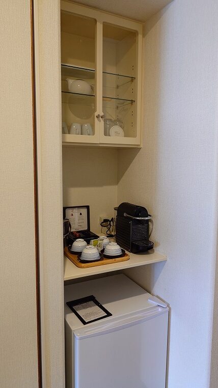食器棚とお茶のセットです。ネスプレッソもありました。