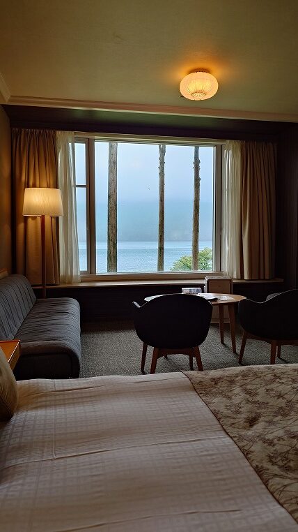 サ・プリンス箱根芦ノ湖に到着です。エントランス付近はどこか日本建築の影響も感じます。