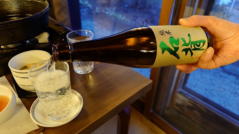 何となく前菜の内容から日本酒をいただきます。「石背」は福島の「廣戸川」というお酒の県内向け限定品で原料に福島産のコシヒカリを使用しています。