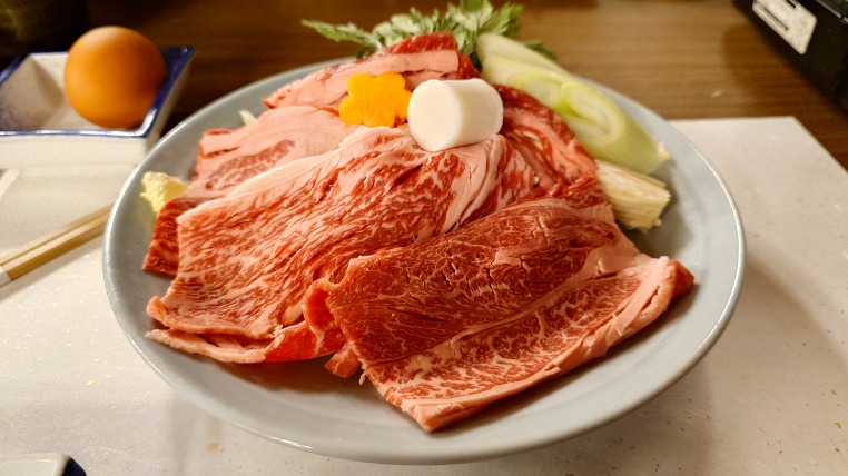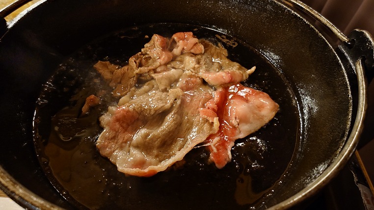そしてメインはすき焼きです。メインがすき焼き以外のパターンもあります。