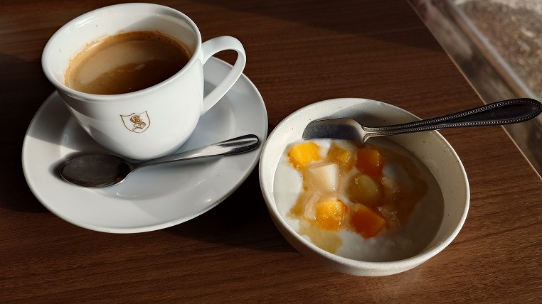 最後にコーヒーとフルーツヨーグルトを。