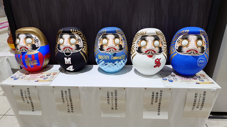 帰りも新白河駅まで送迎をお願いしました。新白河では様々なダルマが並んでいました。