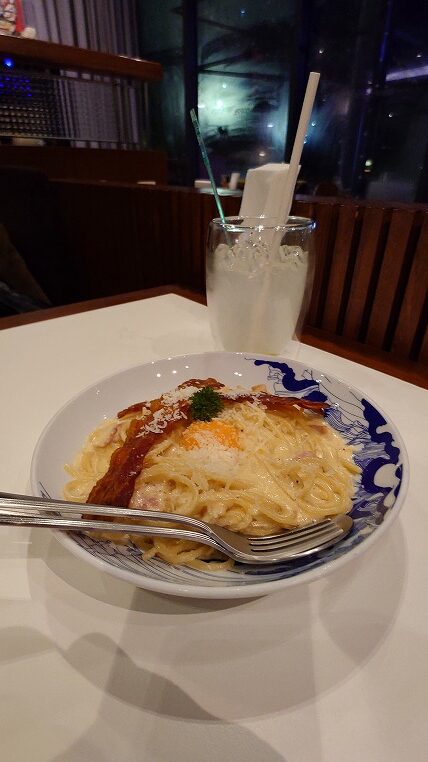 こちらはカルボナーラですね。バンコクでイタリアンを食べるとひと昔前はとんでもなく不味いお店もありましたがここはそんなことはなかったです。
