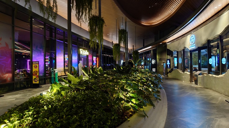 ルーフトップバーを出ていったん部屋に戻り食事にでかけようとしたところ猛烈な雨が降ってきました。これは困ったということで少し小ぶりになるのを待ってから隣接するショップ群の中で食事をする場所を探すことにしました。